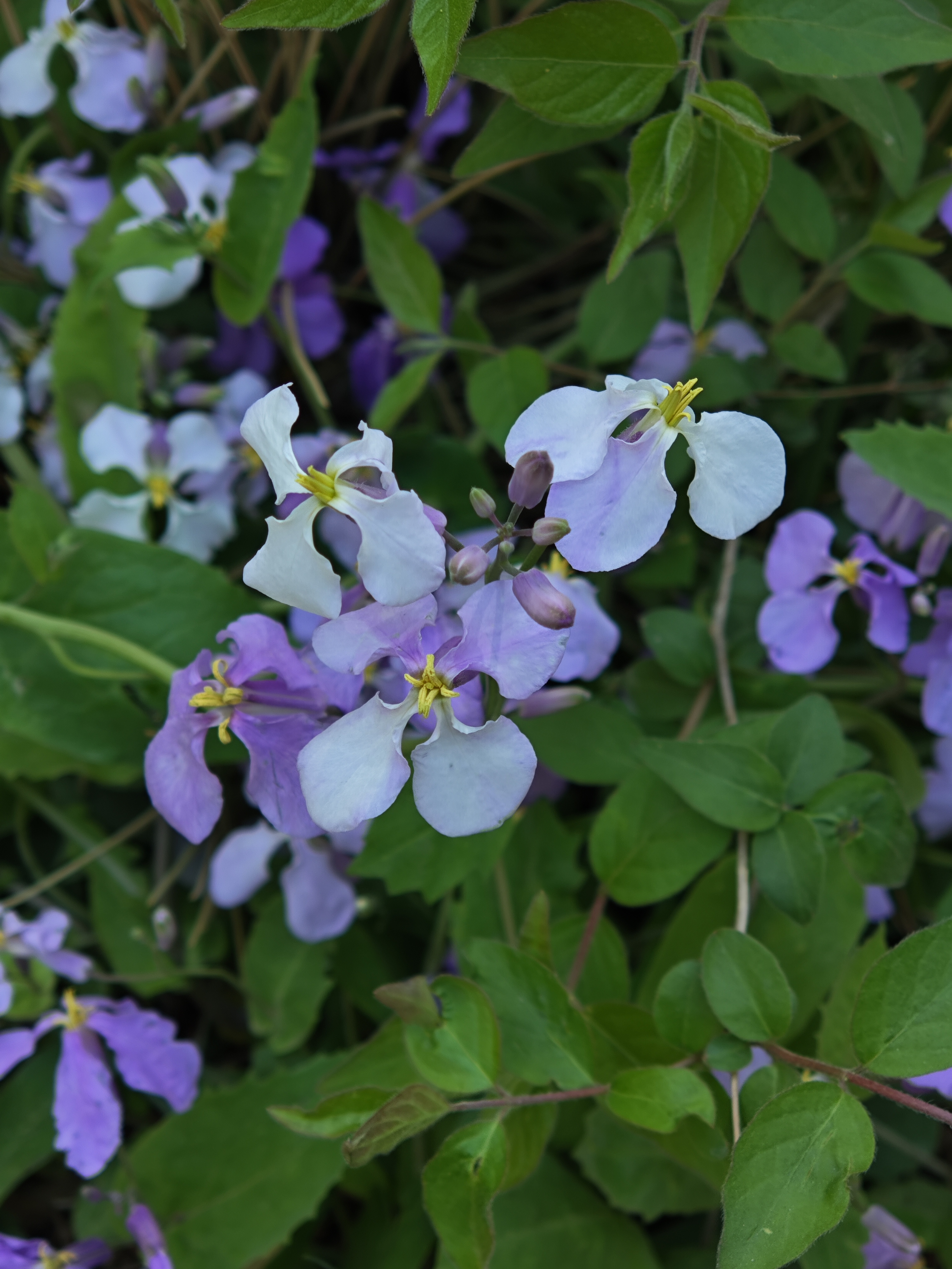喜欢紫色的小花,可每次识别后却总是忘记花名。上图右边图片中的小紫花,特意问了豆包,大名“诸葛菜”。相传是诸葛亮北伐时曾号召军民以此菜充饥,故得此名。