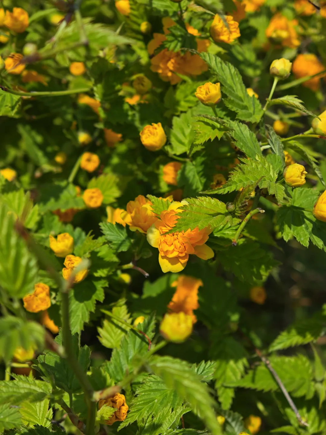下面的黄色花名叫重瓣棣堂花,可不是棠棣哦。棠棣花是一种类似紫叶李的五瓣小花,花语是兄弟的意思 ,《诗经》中有《小雅·常棣》篇。