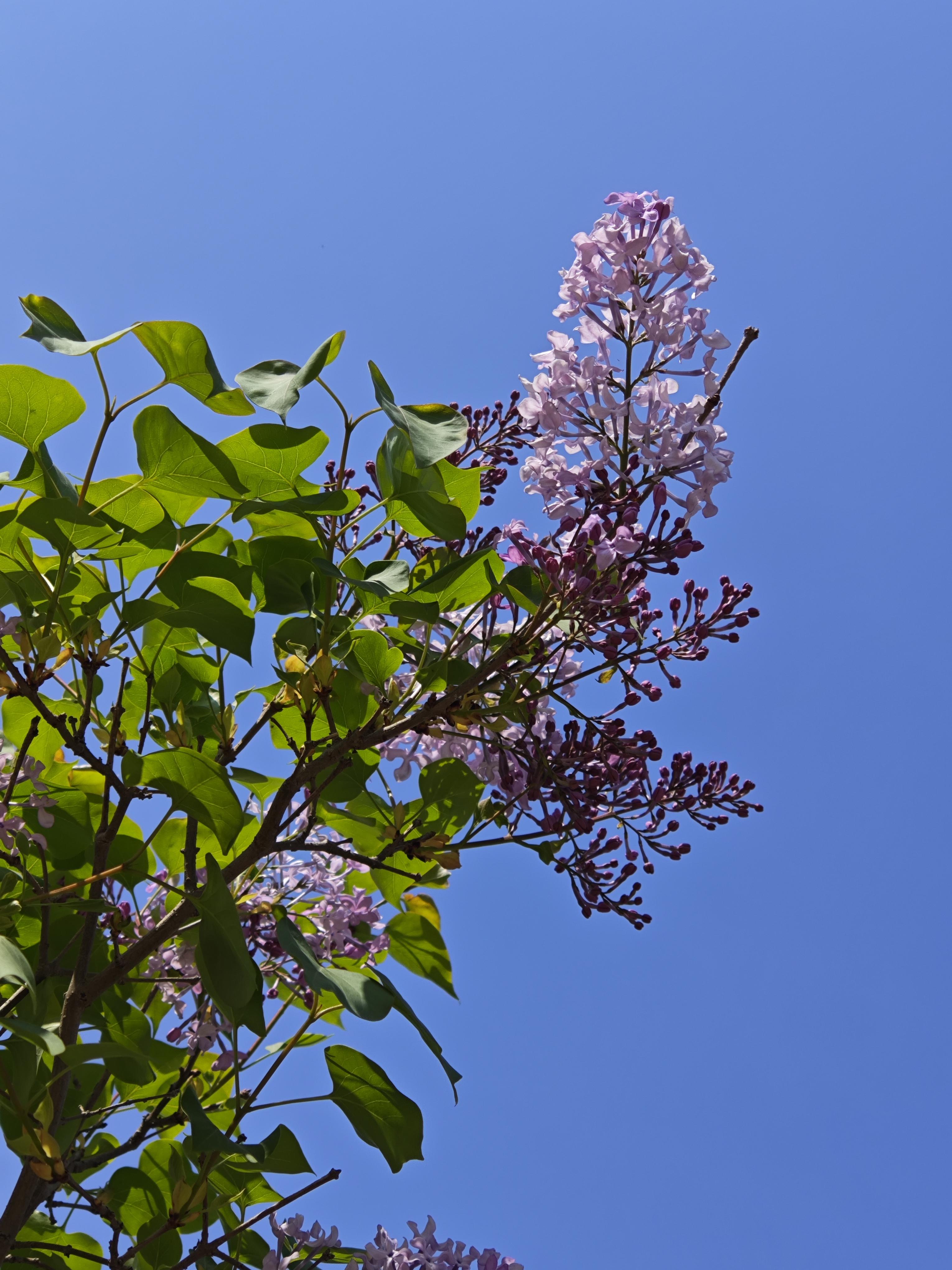 没想到这一次竟邂逅了好几株,当时赏了郁金香后,沿着小路转过那泓湖水时,一股浓郁的香气迎面而来。左侧,有几株花树正映着蓝天迎风摇曳,花香是从树上传来的。树很高,需仰头看。不同于诗人笔下江南女子的忧郁,这几株丁香似有着北方女子的大方明朗,迎风摇曳出动人的风姿,让人留连。